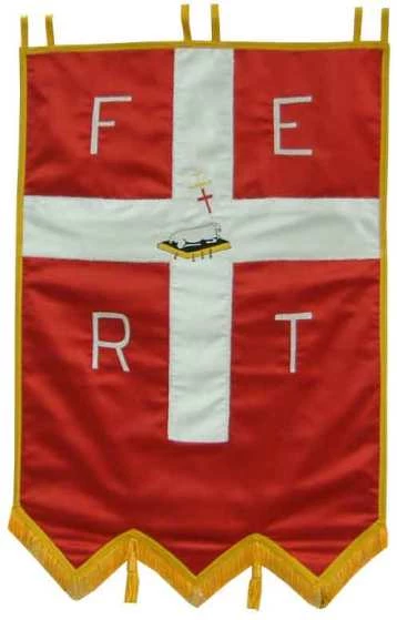 B 94 Banner of St. John – 24″ X 36″ per specifications. Satin material with appliqued letters and machine embroidered emblem.