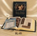 BL 40 The Masonic Family Edition Bible is a complete Masonic reference edition with presentation pages; blue embossed padded cover; family record pages; Blue Lodge, York Rite, Scottish Rite, & Eastern Star membership pages; and a Biblical index for Freemasonry. 9″ x 11 3/4″ x 2 1/4″