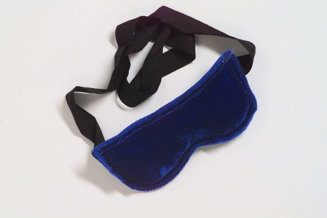BL 75 Hood Wink – Blue velvet, padded. Made to fit eyes closely. Tape ties.