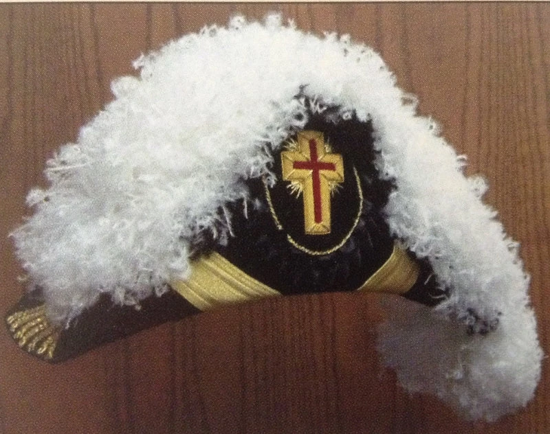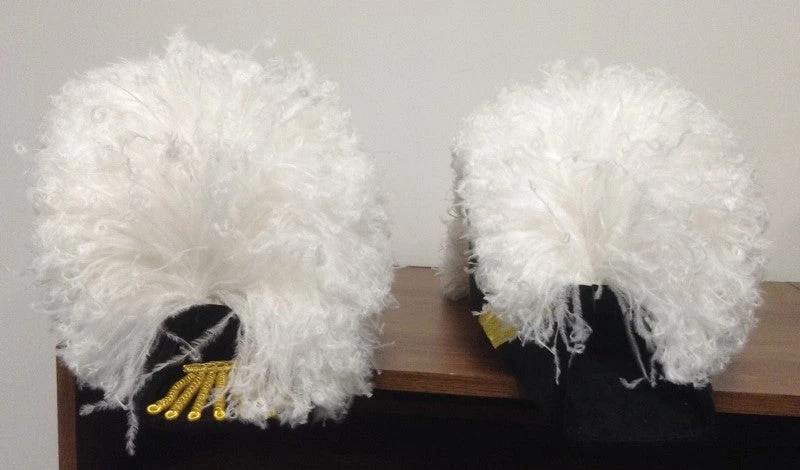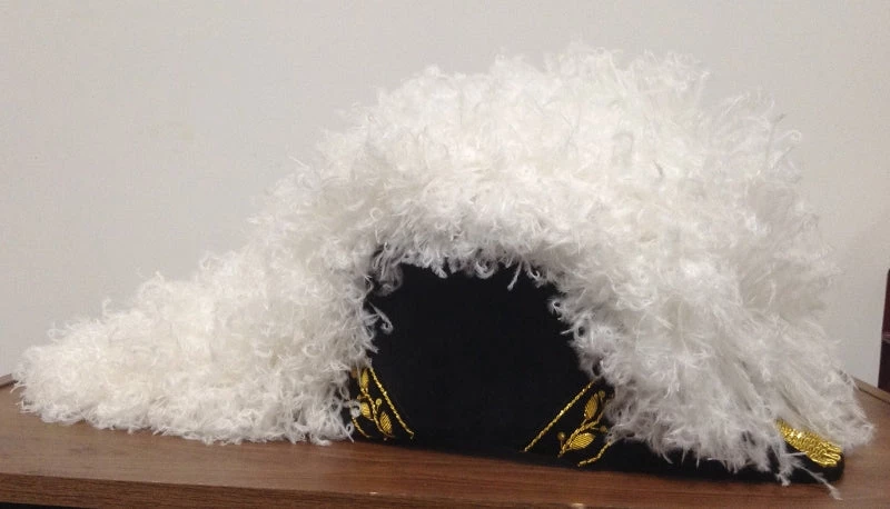 Our chapeaus are made with a traditional black velvet body and come with 8″ 4-ply hand curled white ostrich plumes and black under plumes. Larger plumes are available for an additional price. All chapeaus will be made using our standard body (flat body available on request). For flat body order style KT-325.Â