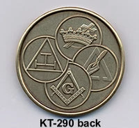 KT 290 Medallion – Knight Templar on one side & York Rite bodies on the other side. Comes with a clear plastic case & stand.
