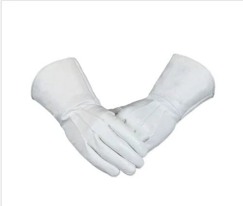 WHITE LEATHER GAUNTLET GLOVES Regulation white leather gauntlet gloves. Made from genuine leather LIGHTLY LINED FOR COMFORT, all leather cuff .