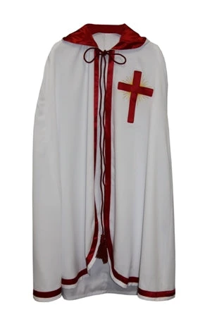 Our Knight Templar Mantles are made of 100% white polyester crepe and are fully lined. All trim is of satin material and made to Grand Encampment specifications.