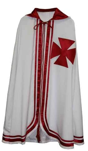 KT 3 Grand Officer, has red templar cross and 2 rows of red trim with red lined hood. Order mantles by chest and length. Adjustable cap can be ordered to match mantle.