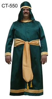 CT 550 Special Ships Captain robe with contrasting sash, includes matching turban with curtain. Made in Polyester Satin. Costumes are normally tailored in size 50. (Larger sizes available on request.)